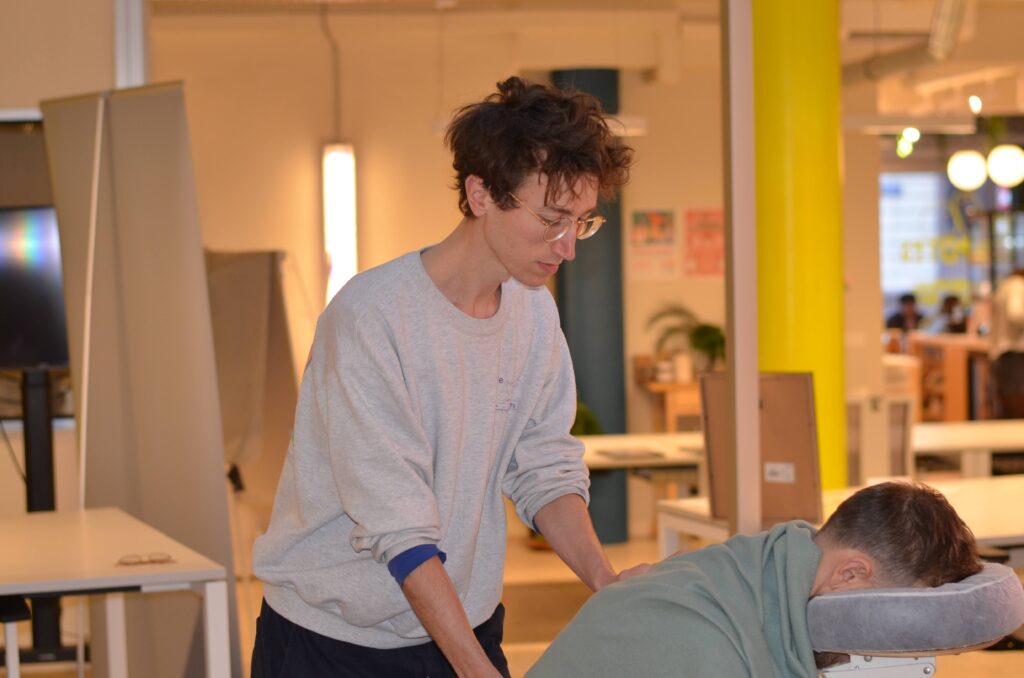 Le shiatsu se pratique aussi sur chaise ergonomique, idéale pour des interventions.